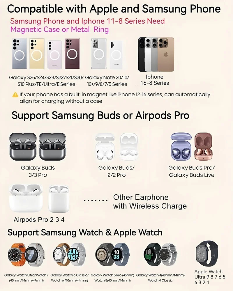 Feature 3: Wirelress charger for Airpods Pro 4 3 2 Samsung Earbuds